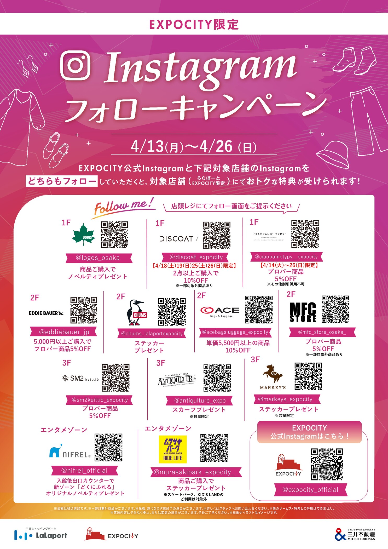 EXPOCITY官方gram contemporary以及參與活動的商店的Instagram gram contemporary關注兩者如果您參與,即可在參與活動的商店享受特別優惠(僅限LaLaport EXPOCITY)!