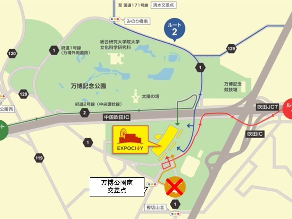 本日(11/23)13:20頃より、万博公園南交差点(樫切山)入口を封鎖しております。