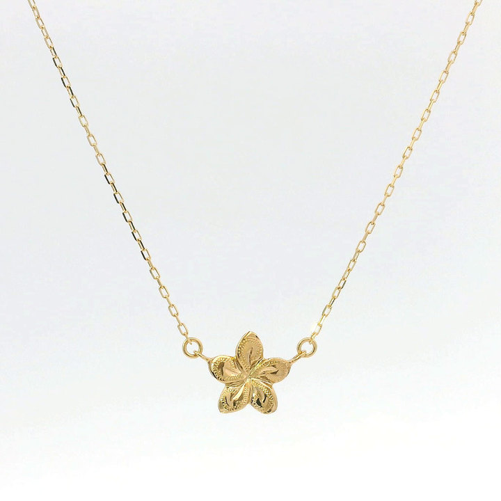 K18雞蛋花項鏈,將手工雕刻的雞蛋花美麗長存於一身。