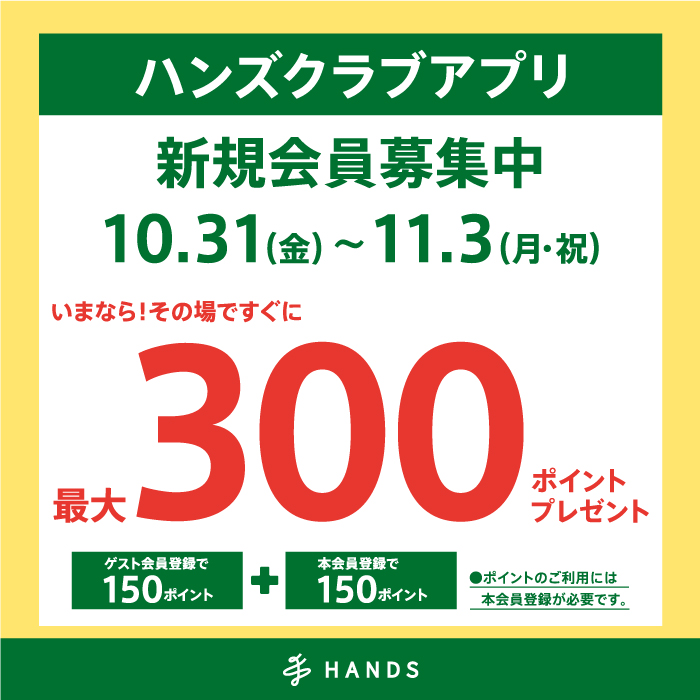 活動期間,新加入Hands Club APP即可獲得最多300積分的Hands Club積分!