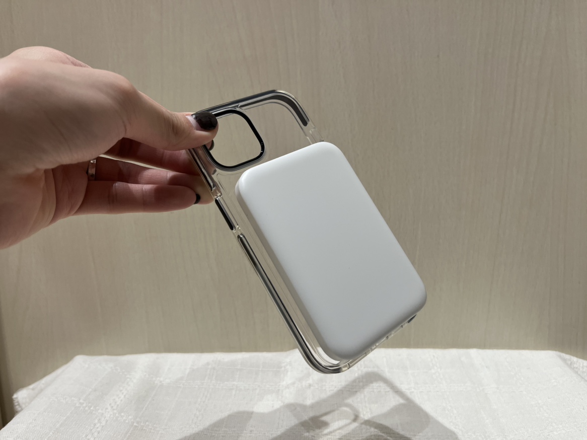 這是一款可以使用 iPhone 的 MagSafe 功能充電的行動電源!
