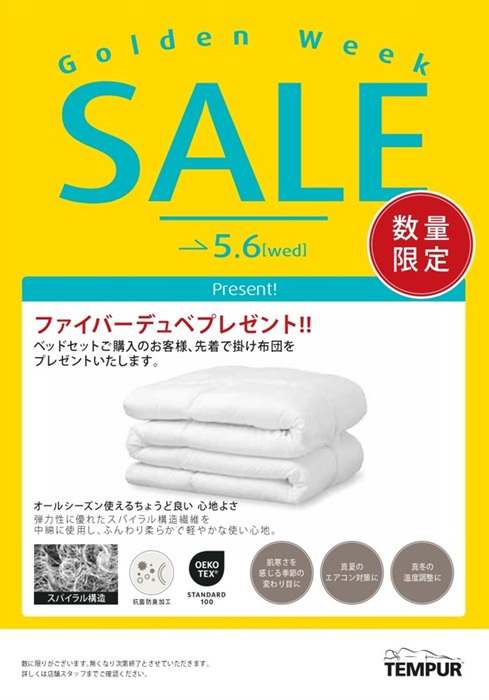 在上述期間,TEMPUR正在進行黃金週促銷活動!