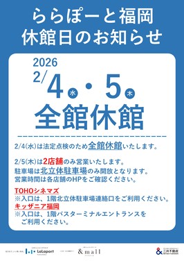 休館日のおしらせ(2/4(水)・2/5(木) )