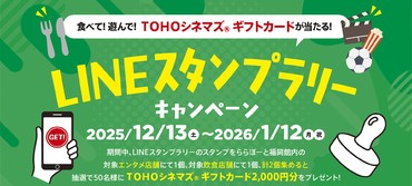 - 食べて!遊んで!TOHOシネマズ® ギフトカードが当たる! LINEスタンプラリー キャンペーン開催!