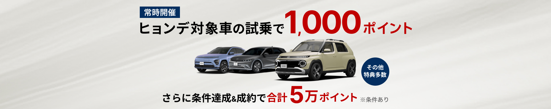 - 從樂天car開始現代的對象車的試乘試駕,簽約或影片觀看&問卷調查回答的樂天積分贈送活動!