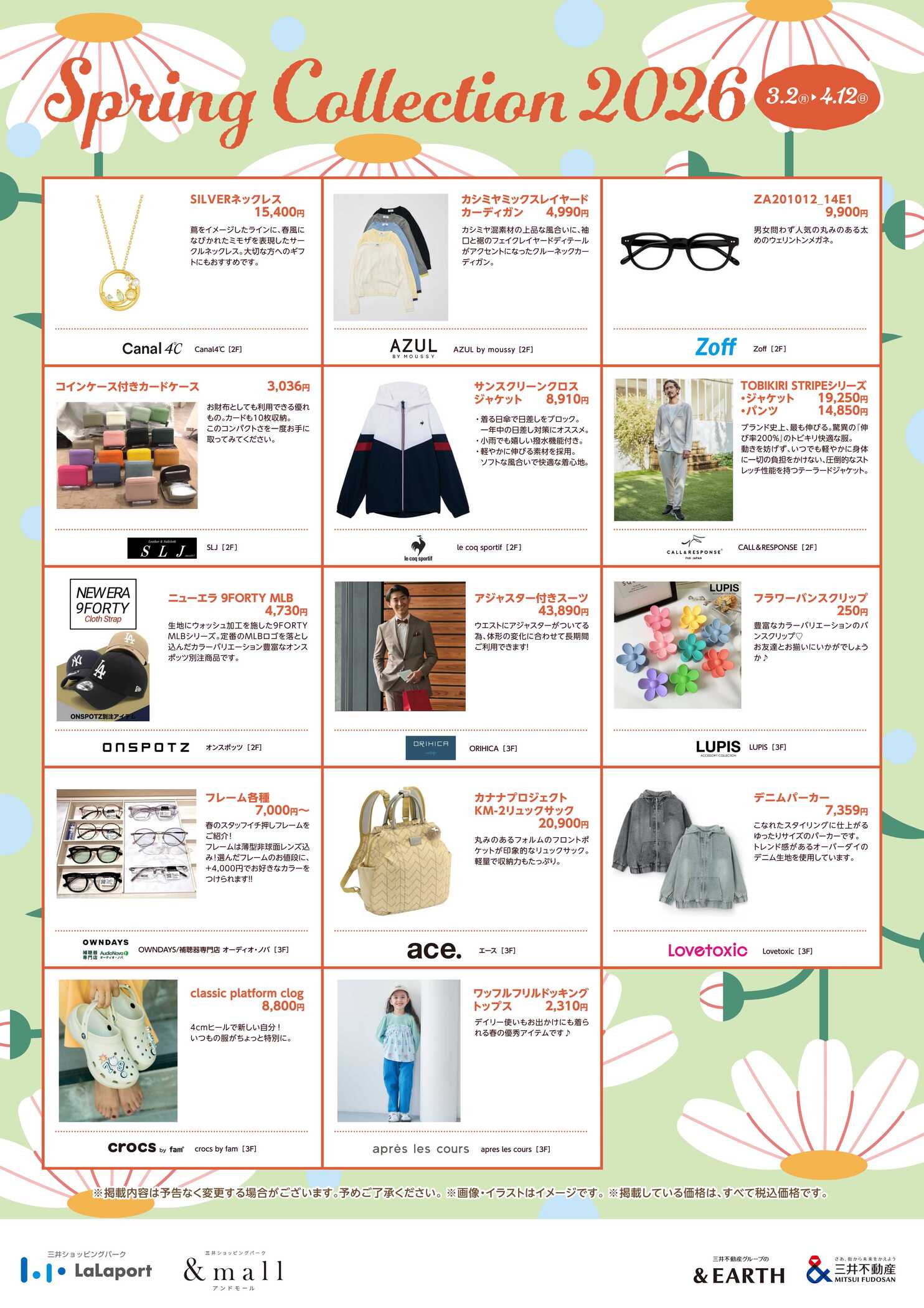 - 1/6 (周二) ~3/31 (周二) 周二、周三、周四限定可在服裝店使用的無現金結算限定購物券500日元!