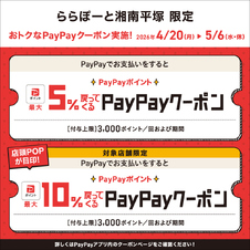 - PayPayでお支払いをするとPayPayポイント最大5%戻ってくるクーポン・対象店舗限定で10%クーポンも!