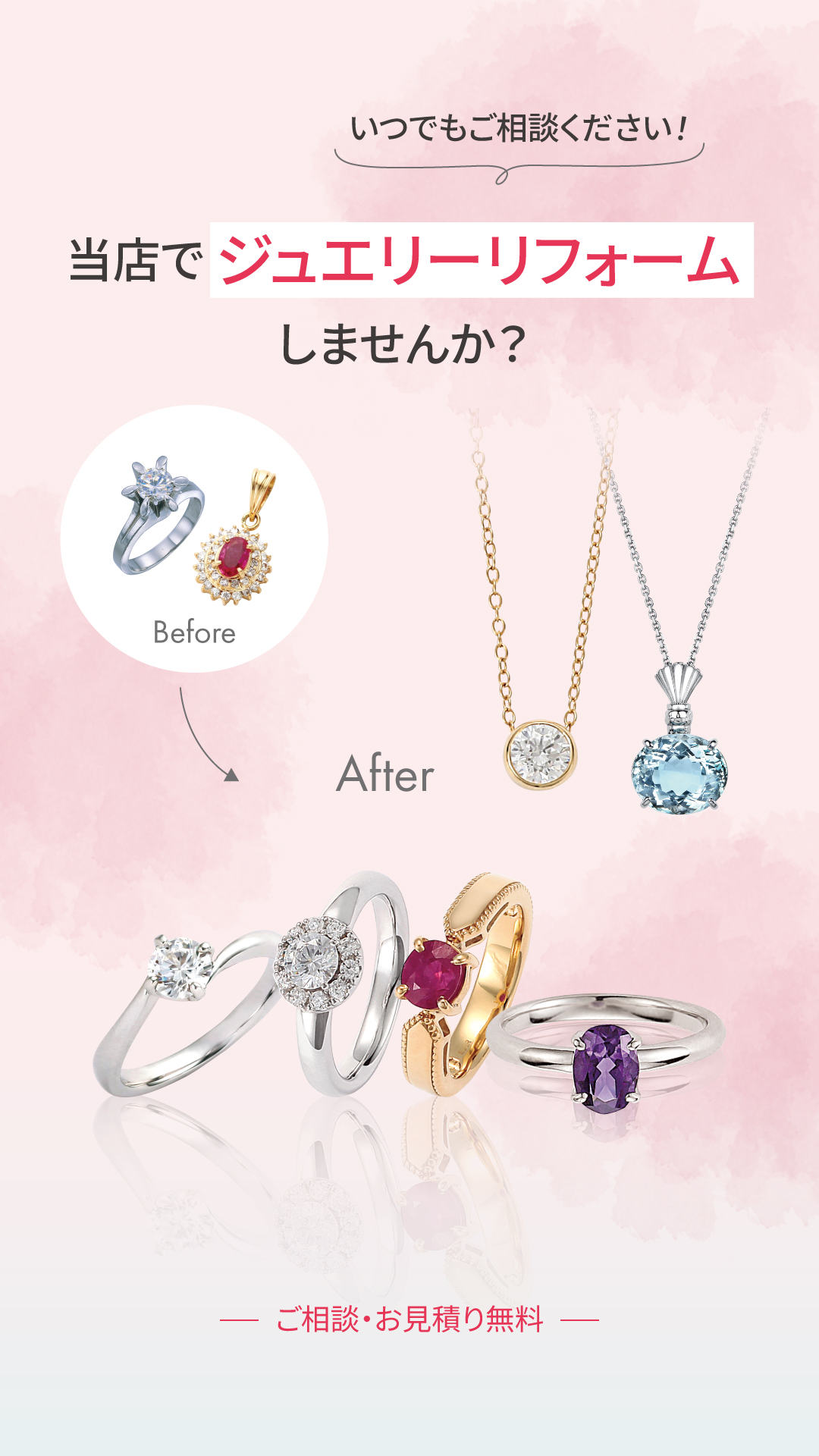 珠寶的修理或翻新、定制或收購,請務必與J.J.h湘南平冢店商談。