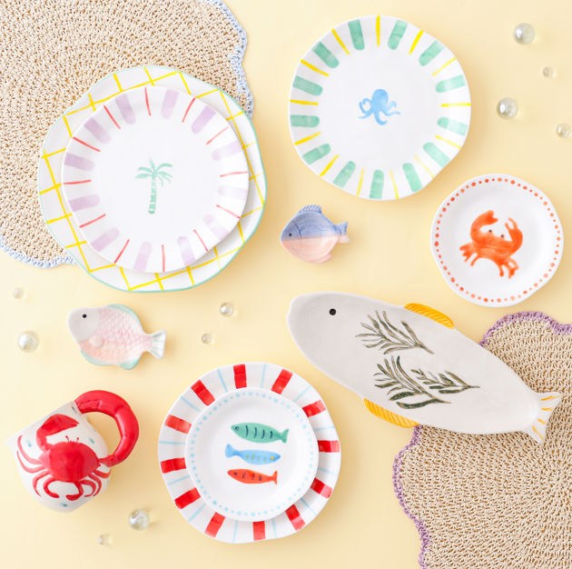 我們鼓勵您在家中舉辦一場獨特的派對,使用色彩鮮豔、融入海洋元素的餐具。