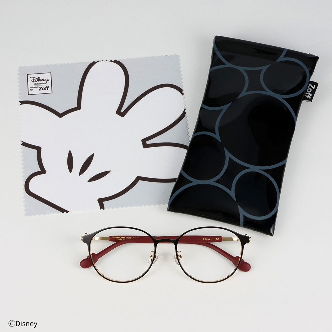 ミッキーマウスがフレームフロントを抱えているような、キュートなフォルムのメタル パーツをあしらったジュエリーライクなフレームです。