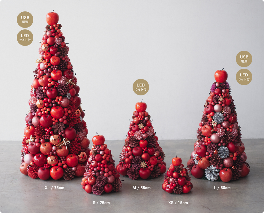 備有5種尺寸,可依擺放位置選擇。可配合室內裝飾選擇的花環及