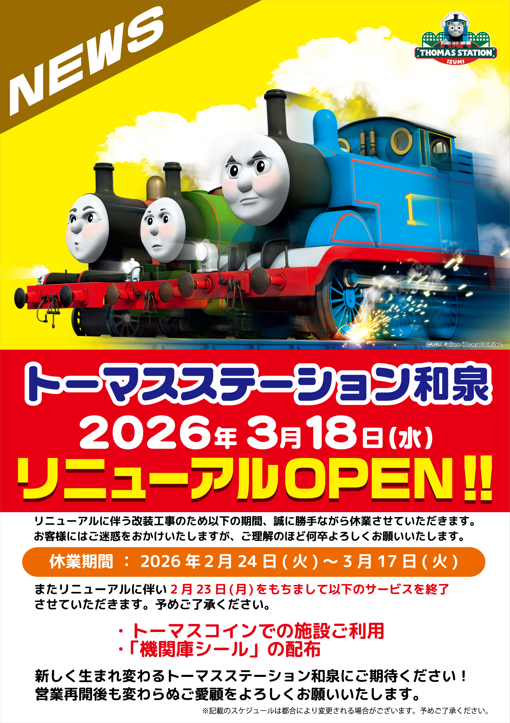 Thomas Station Izumi 將於 3 月 18 日星期三重新開放!