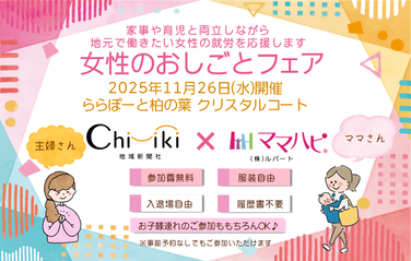 【入場無料】地域の企業と出会える!「女性のおしごとフェア」開催♪