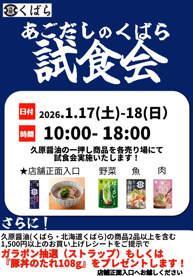 並且,在店鋪正面入口出示包含久原醬油2種以上商品1,500日元以上的東急商店購物小票的話