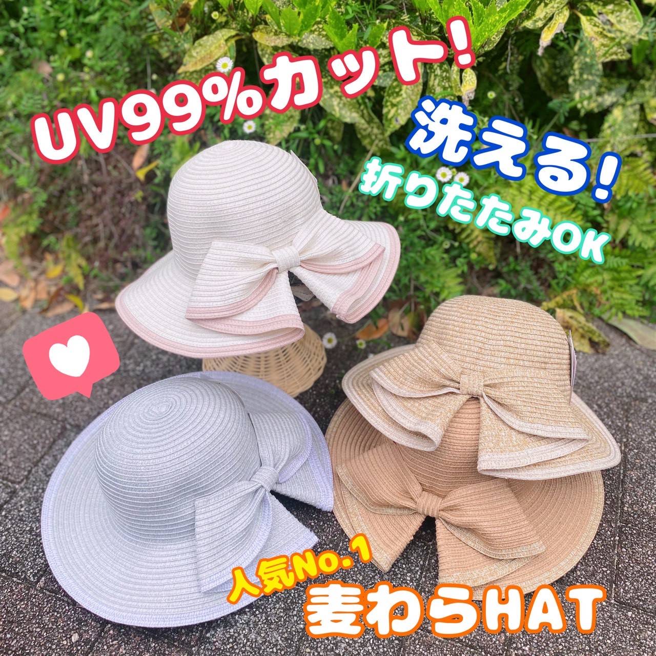 - 手洗い可能な【つば広ハット】