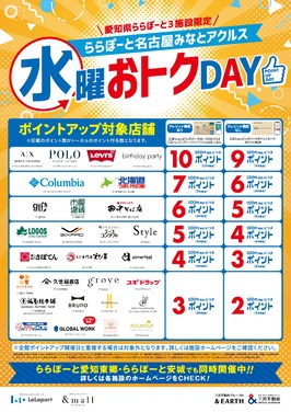 <每周三舉辦!周三優惠DAY>對象店鋪限定三井購物公園積分更新日