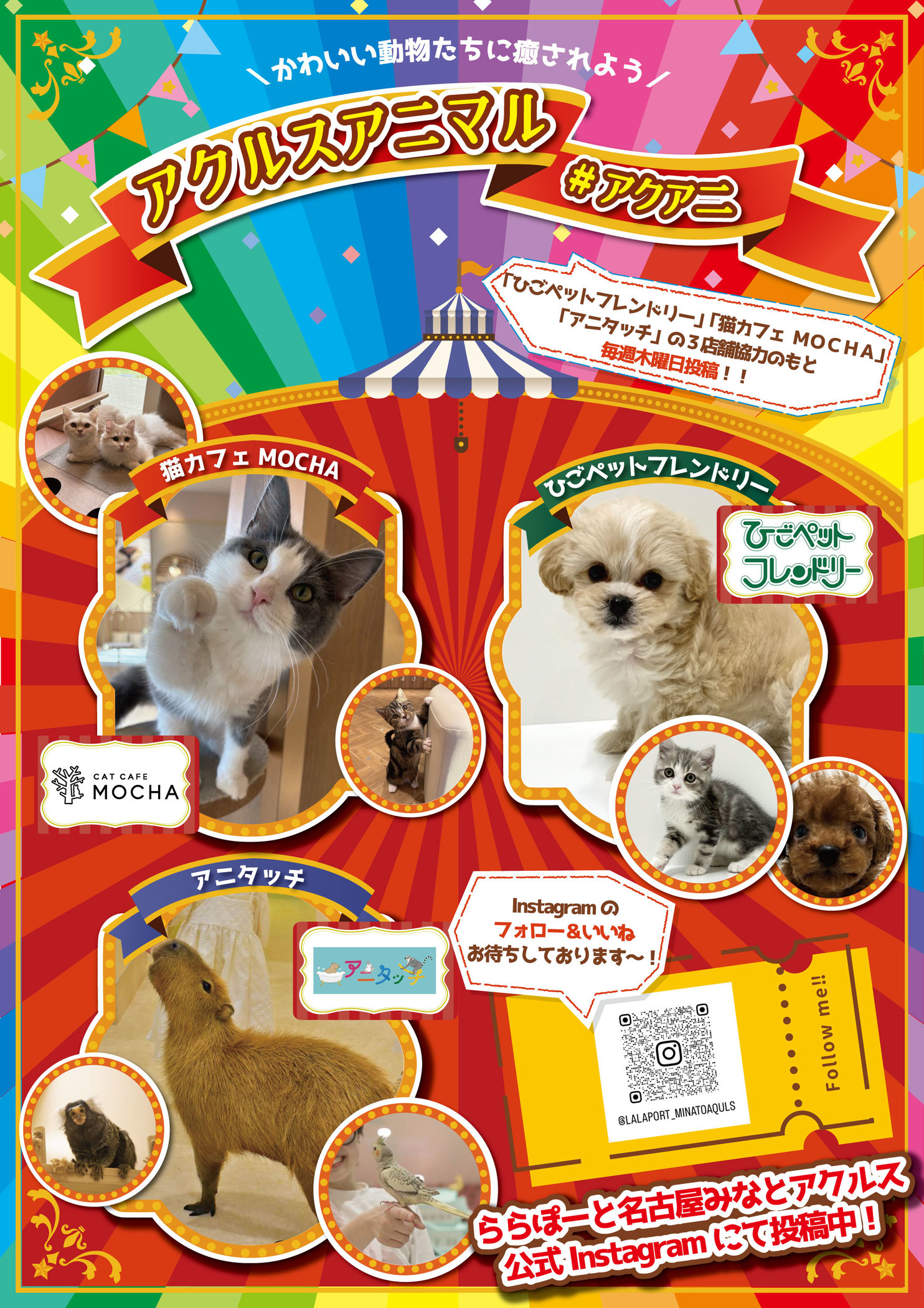 - Akursu Animal是可以享受與動物們親密接觸的場所!目前已在LaLaport名古屋港AQULS官方gram contemporary上發布!