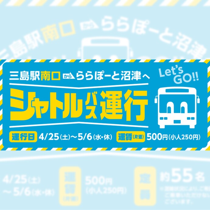 從三島站南口到LaLaport沼津接駁巴士服務!公告!