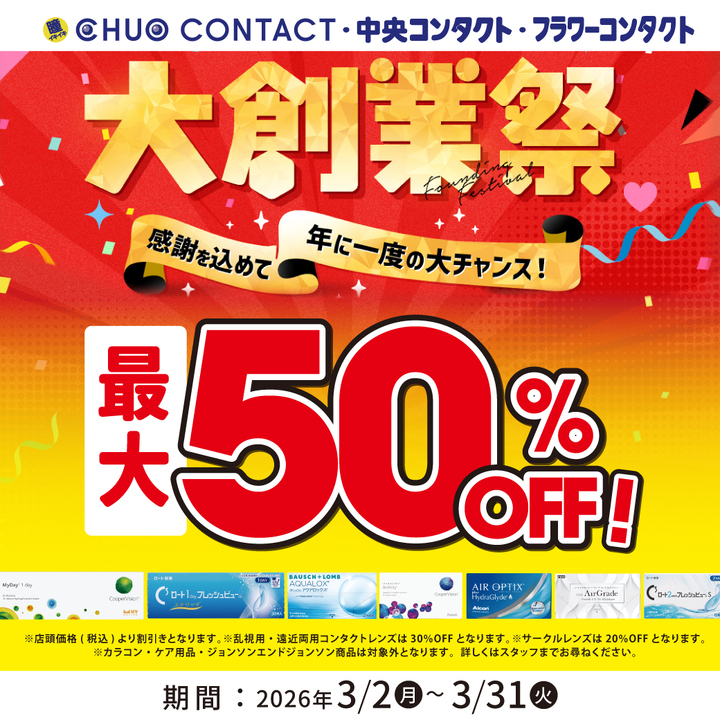 大創業祭!対象店舗限定最大50%OFF!!