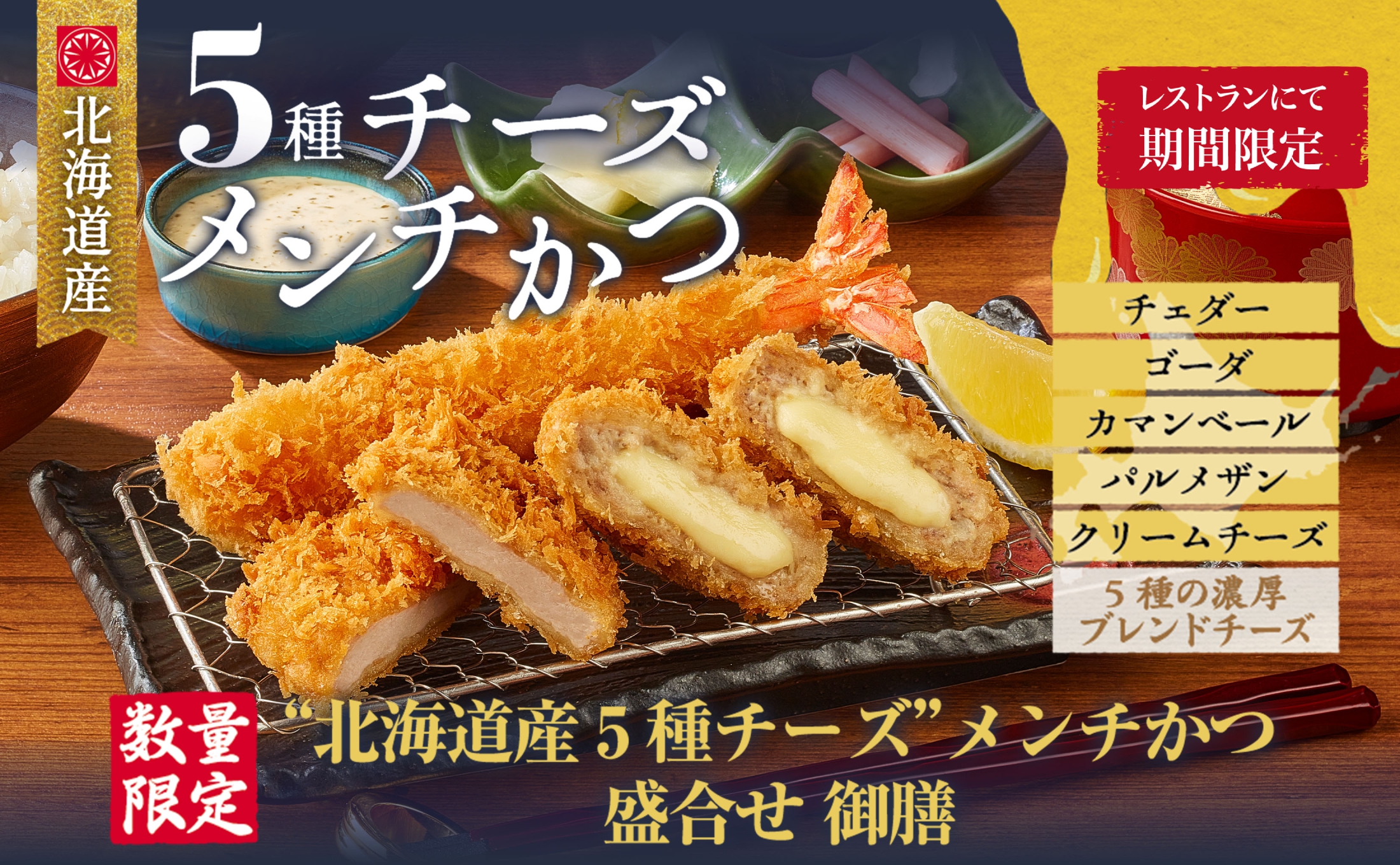 - レストランにて「”北海道産5種チーズ”メンチかつ盛り合わせ御膳」を期間限定で販売!