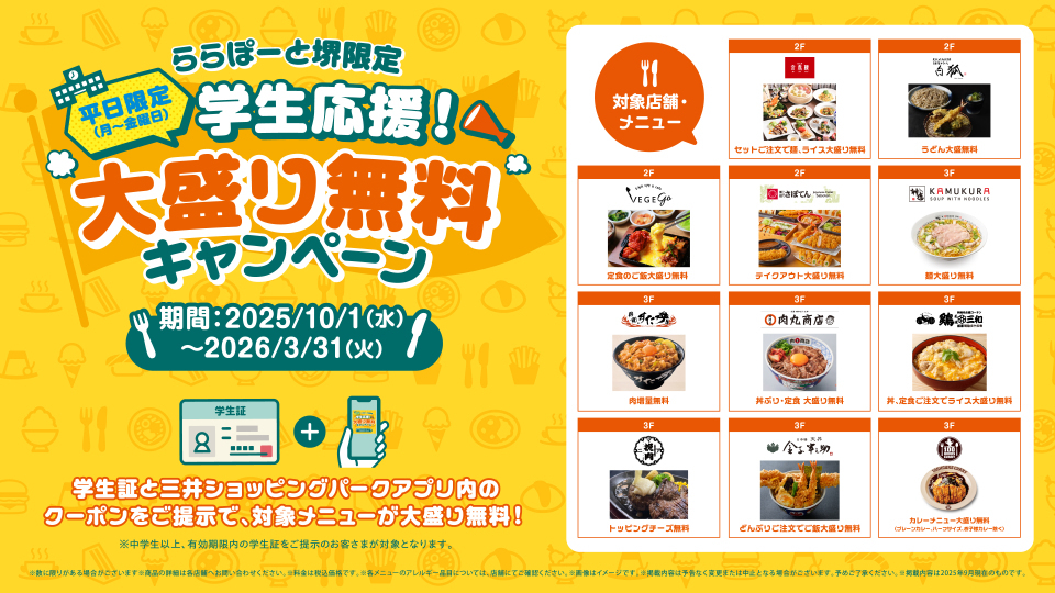 三井購物公園Mitsui Shopping Park LaLaport SAKAI為具有信用功能的積分會員提供特別優惠