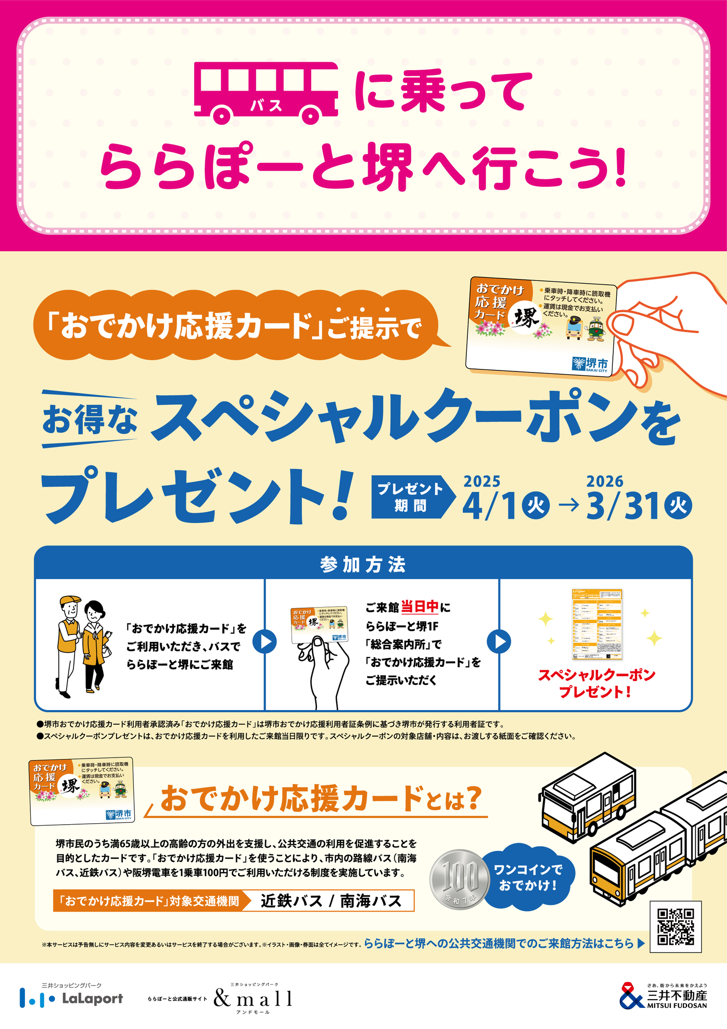 ・請使用「Odekake支援卡」搭乘巴士來LaLaport堺。