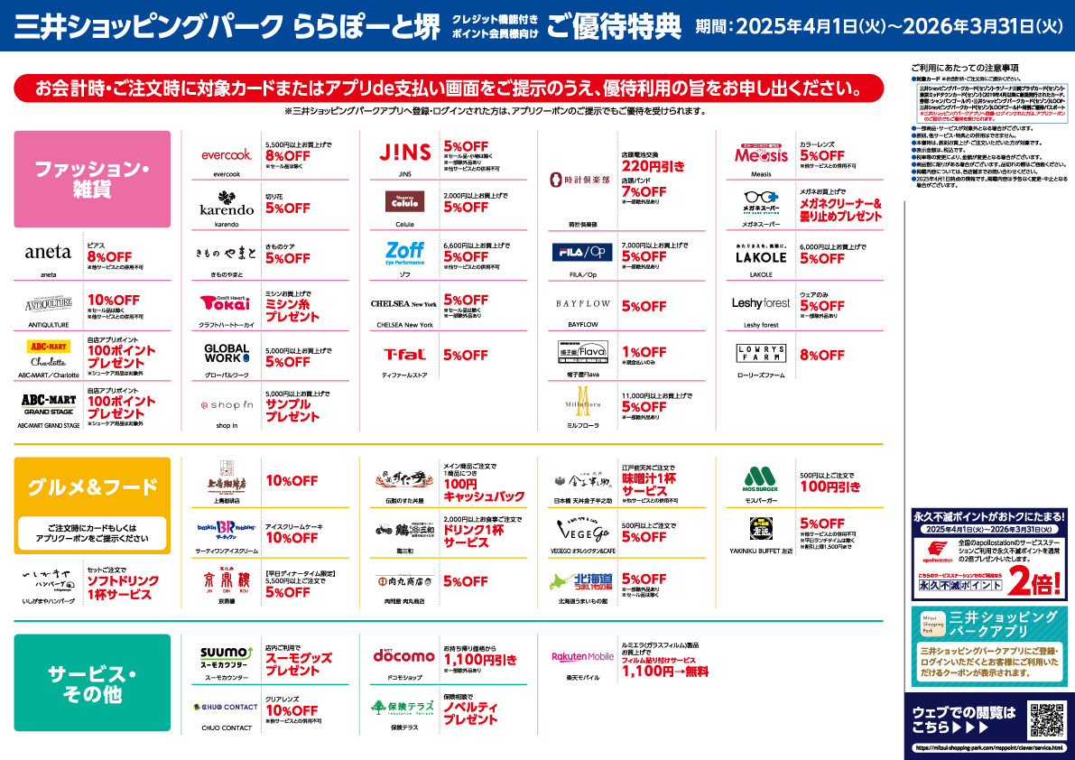 - 三井購物公園Mitsui Shopping Park LaLaport SAKAI為具有信用功能的積分會員提供特別優惠