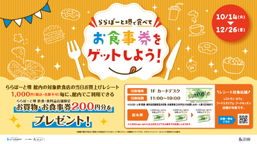 - 在LaLaport堺用餐即可獲贈餐券!