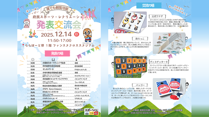 Osaka休閒協會(公益法人)將舉辦休閒運動體驗角活動。