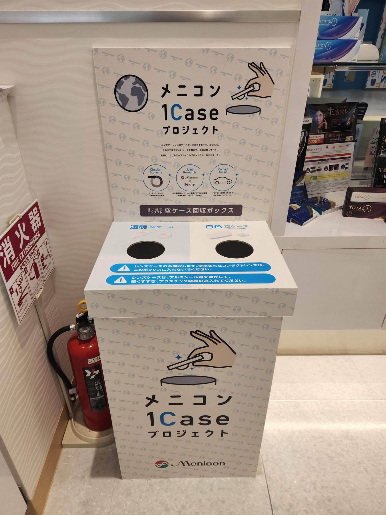 我們在商店內設置了一個空的一次性鏡片盒收集箱。