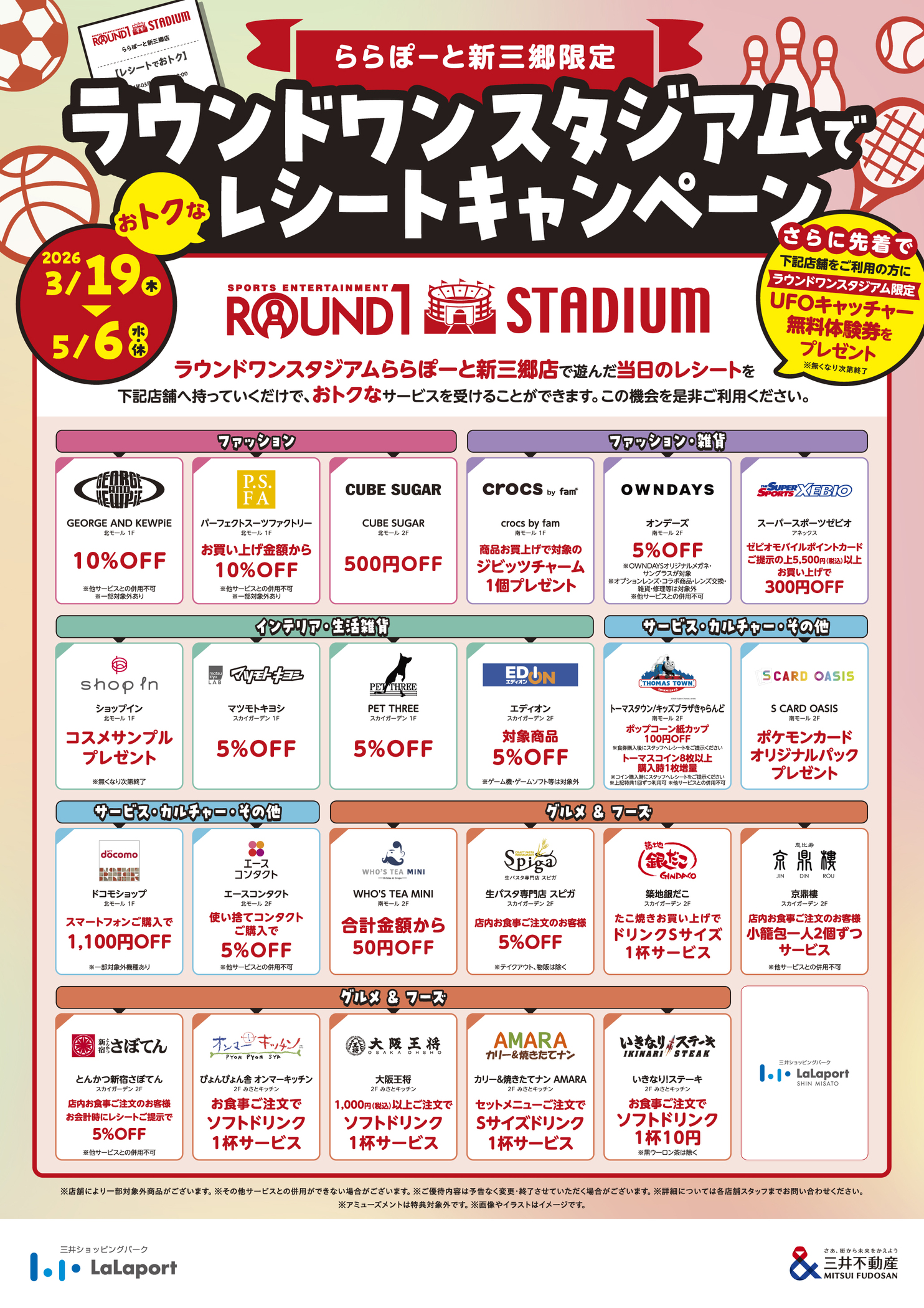 在活動期間,您只需攜帶當天在Round one LaLaport新三鄉遊玩的收據到目標商店即可。