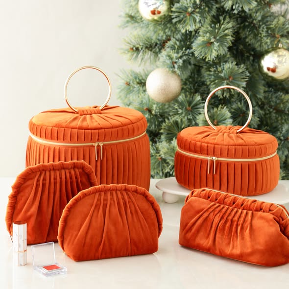 這款小包設計別緻,採用光澤絲絨面料,並飾有褶襉。