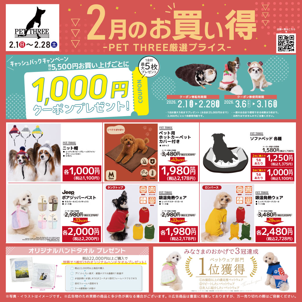 - 含稅每購買5,500日元以上贈送1,000日元優惠券!