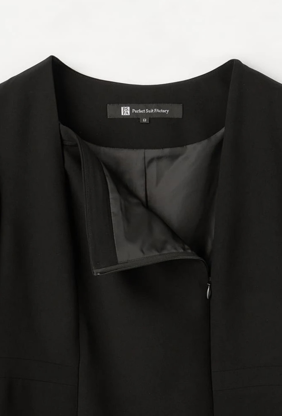 這是一款可以長期穿著的基本款黑色正裝套裝。