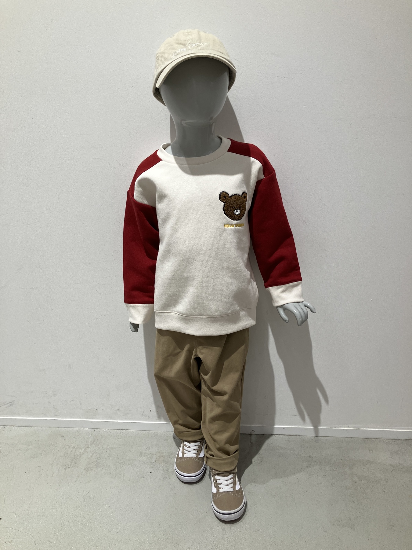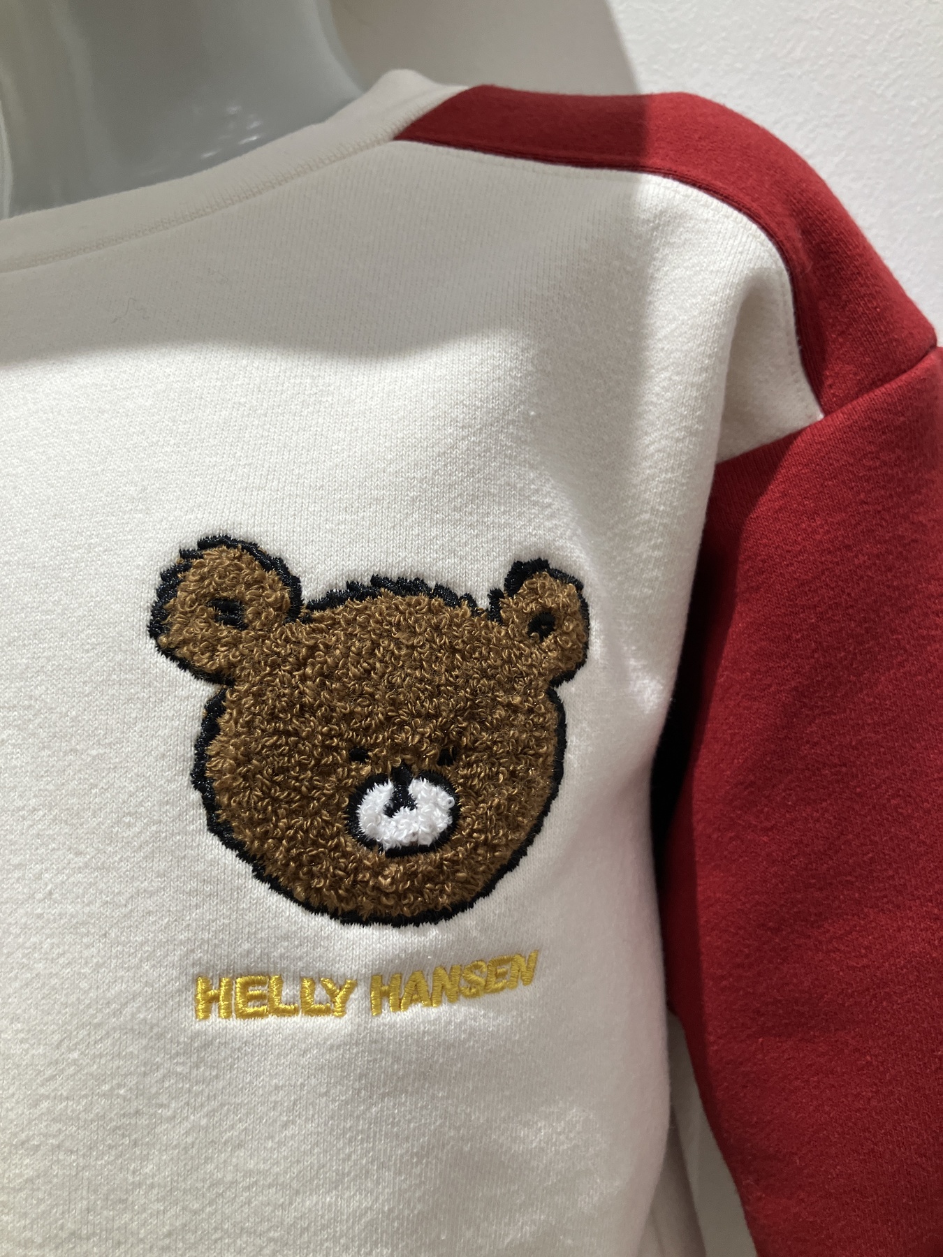 胸元のヘリーベアが目を引くスウェットは、着るだけでほっこり可愛い印象に。