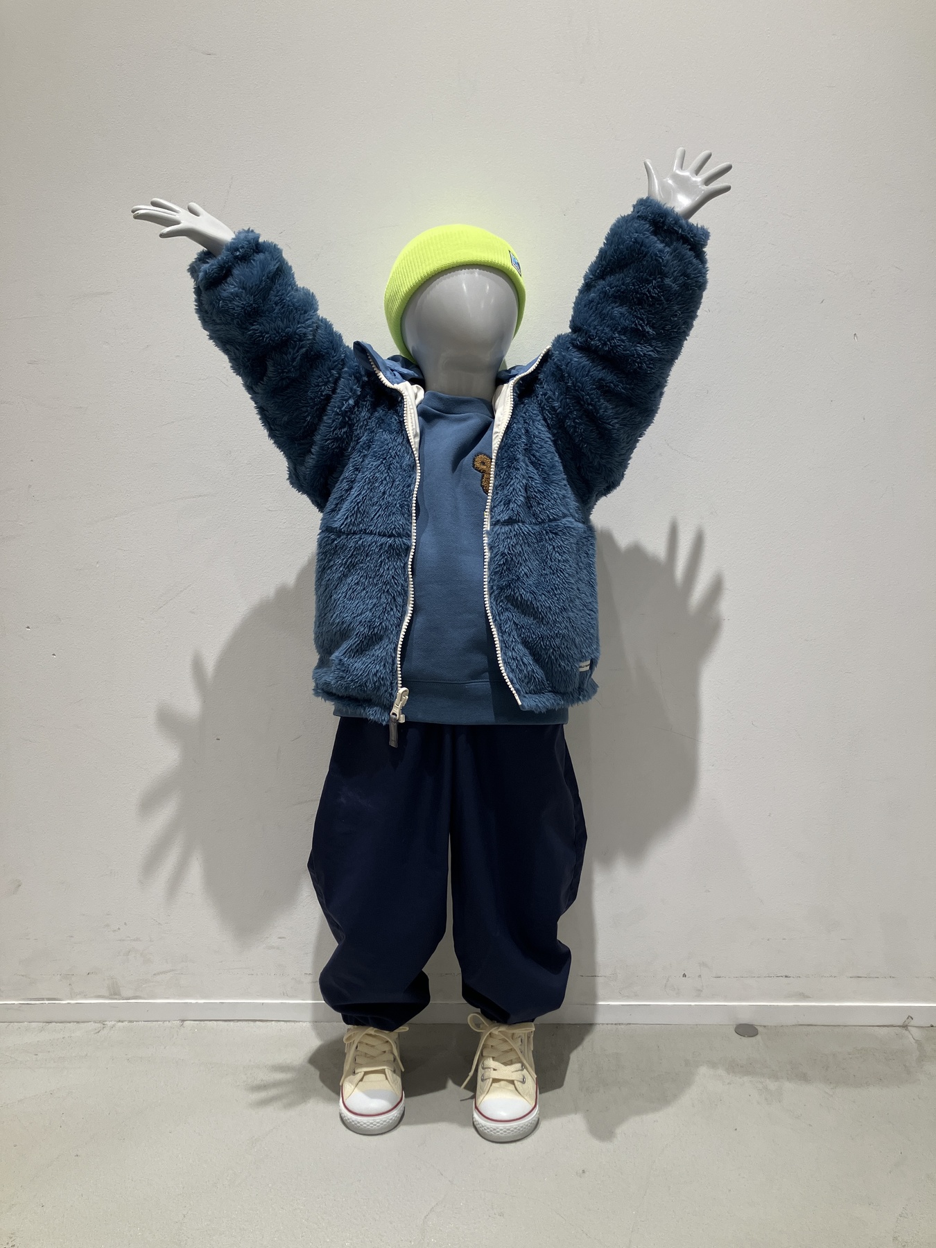 一款雙面穿外套,一面是蓬鬆舒適的抓絨布料,另一面是乾爽的棉質布料。