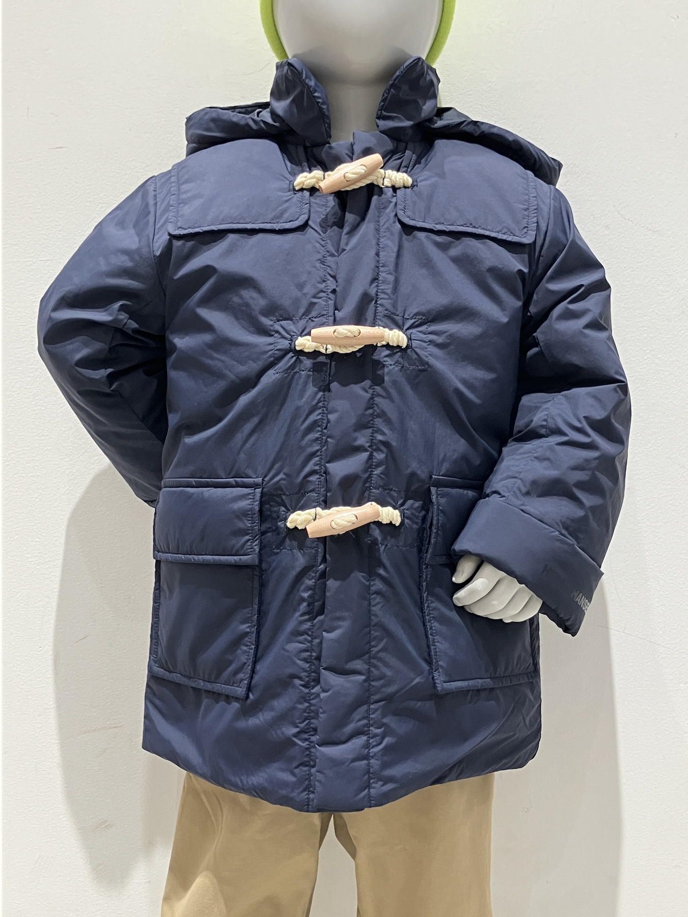 藏青色的穩重色彩搭配栓扣及大口袋更添特色。