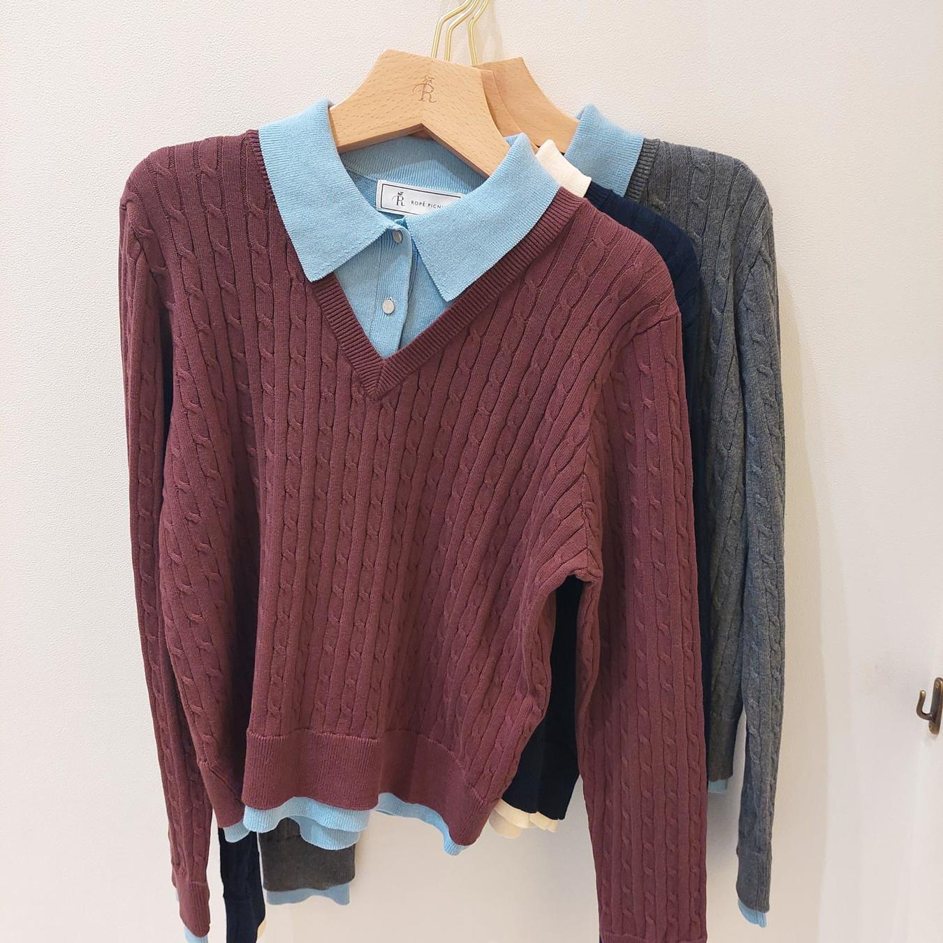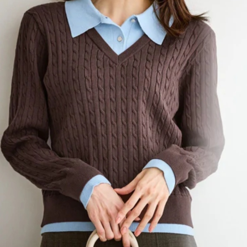 新色のダークブラウンが登場!一枚でコーデが完成、ケーブル編みで着痩せも叶う万能レイヤードニット。