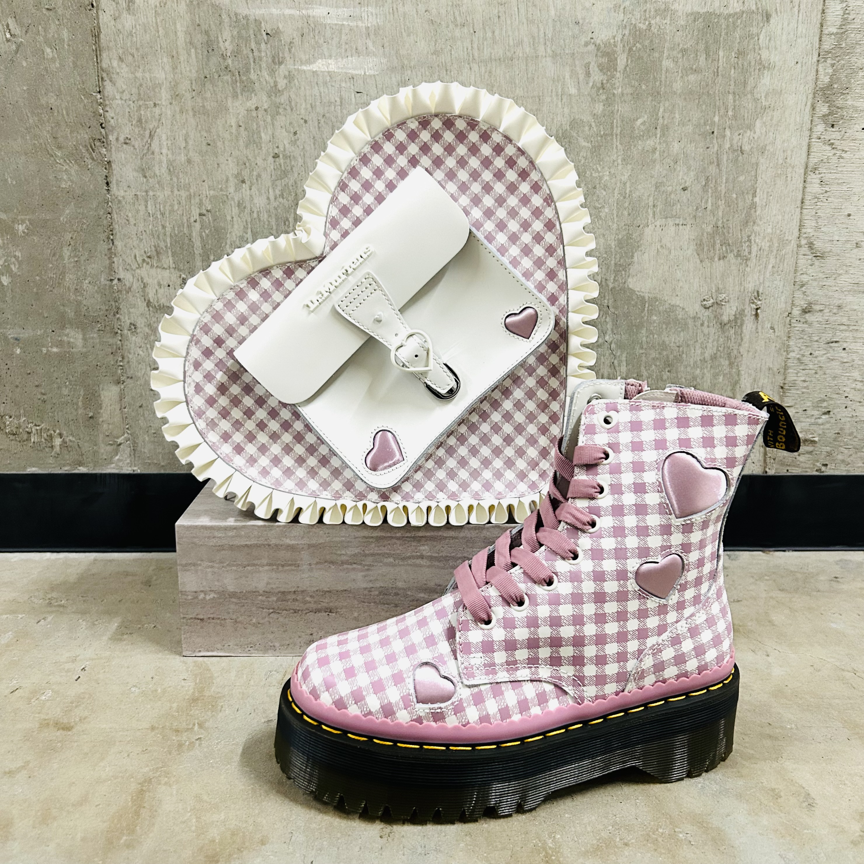 共有三種款式:靴子、鞋子和包包,全部採用醒目的粉紅色配色。