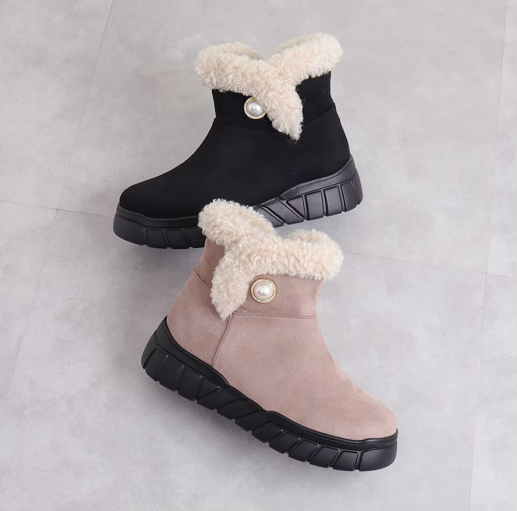 履き口のカールファーとパールモチーフが可愛いショートブーツが登場♡