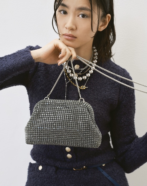 2WAY鏈條肩帶裝飾蛙嘴式寶石迷你包