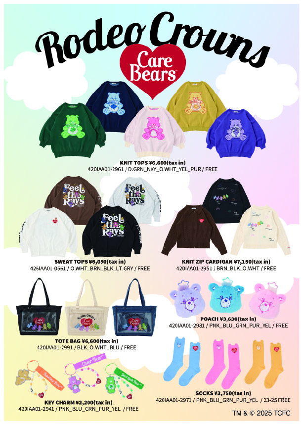 Care Bear x RODEO CROWNS 合作商品將於 10 月 9 日星期四開始發售!