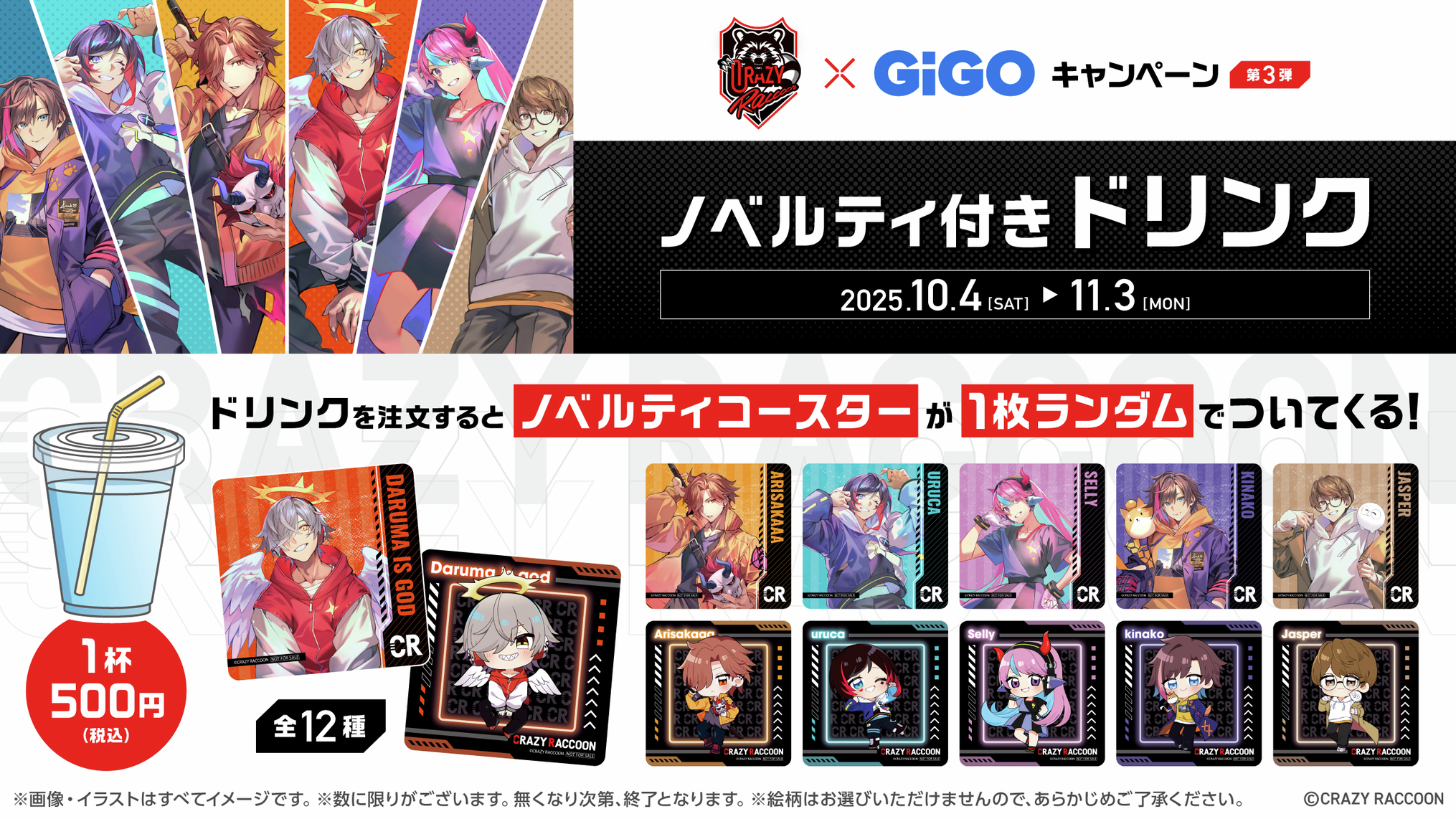 CRAZY RACCOON×GiGO第3彈附贈品飲料銷售!