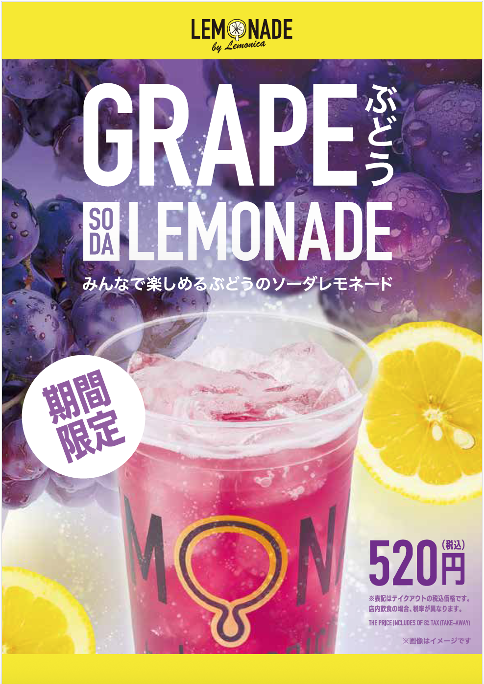 即將販售口感濃鬱的「葡萄蘇打檸檬水」☆