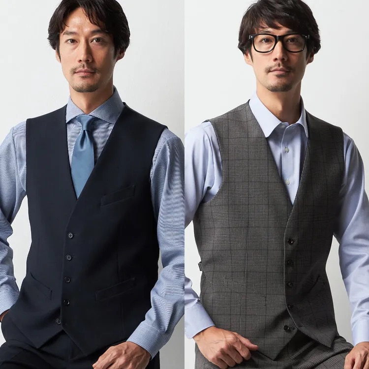 另外,備有與外套、西裝褲相同佈料的背心款式,可當作三件套套裝穿著,在正式結婚典禮、753歲、孩子畢業入學等場合穿著。
