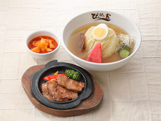 可以品嘗到剛做好的生冷面和發出聲音烤制的煎餅