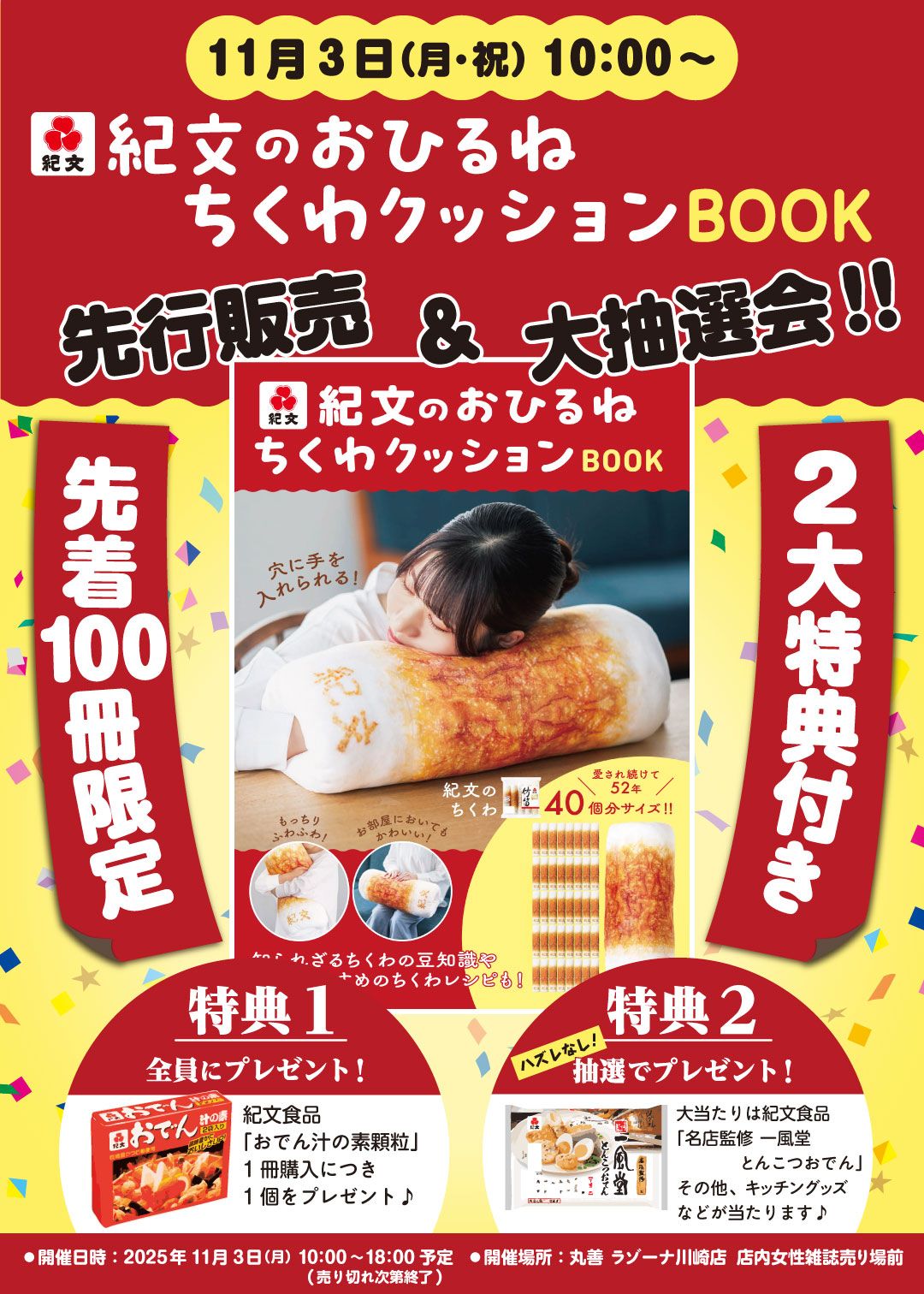 我們將出售預定於 11 月 4 日星期二發布的“Kibun's Nap Chikuwa Cushion Book”。