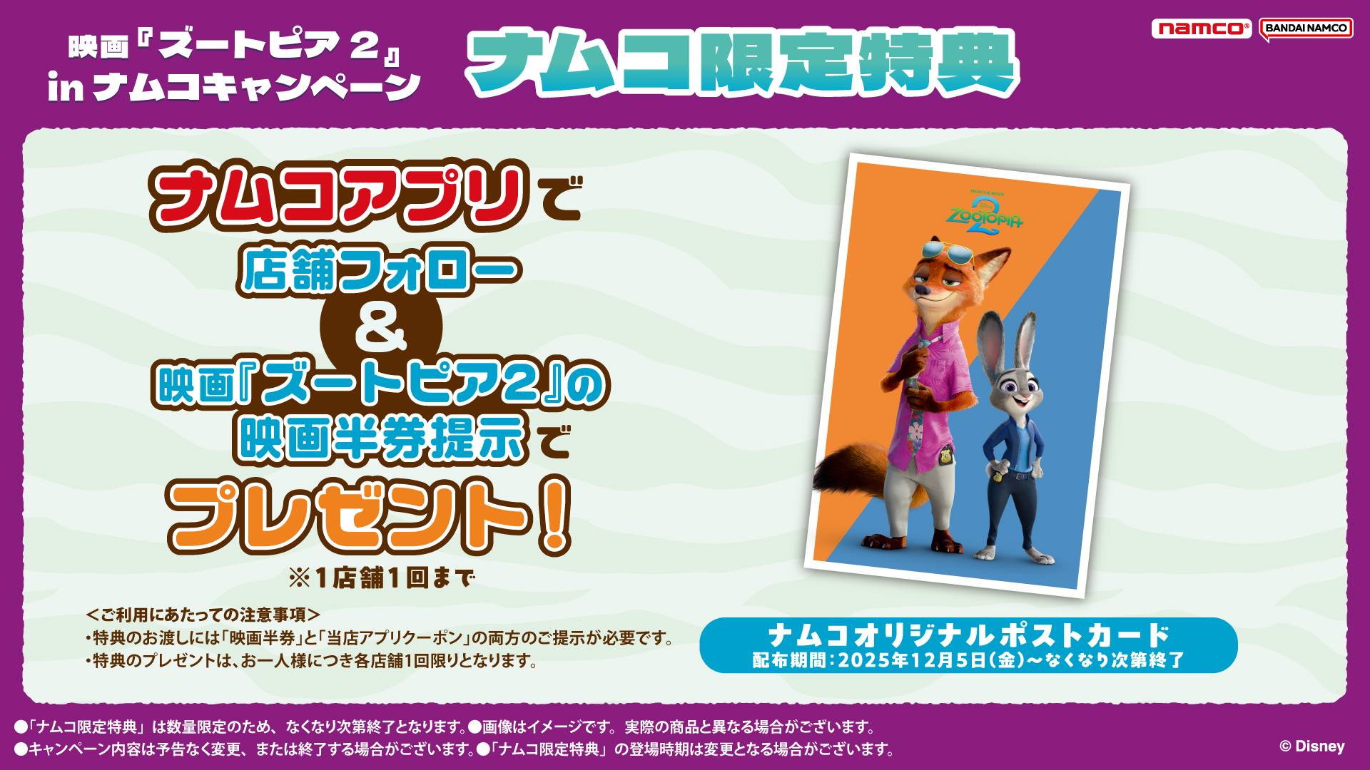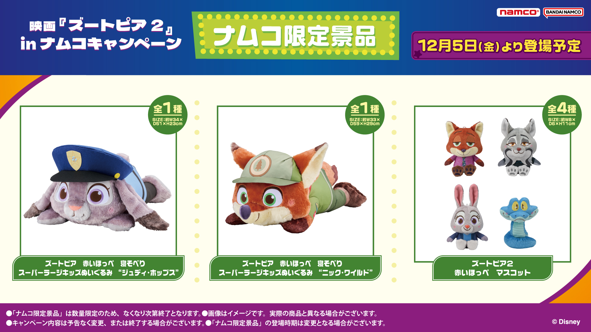 為紀念電影《瘋狂動物城2》的上映,namco將提供獨家獎項和namco!