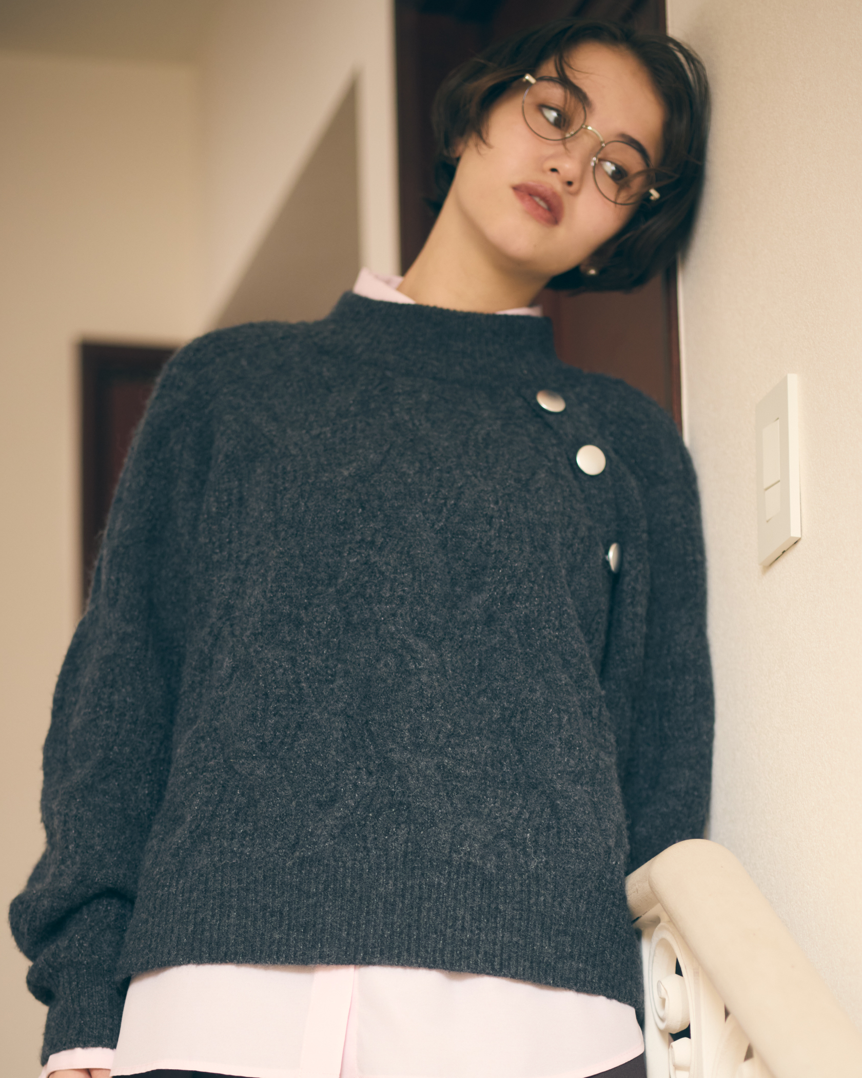 - 絞花紐扣針織衫★