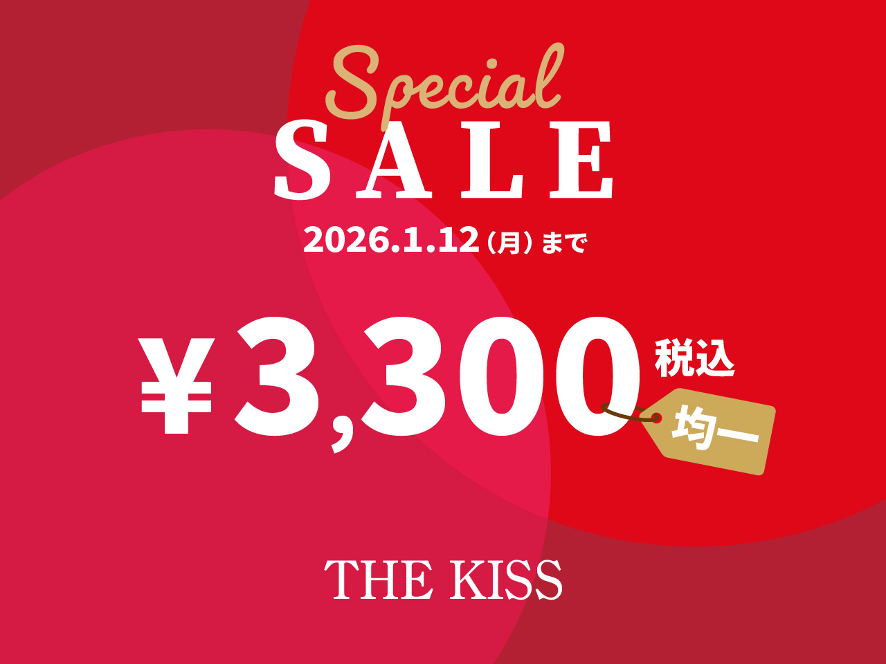 2026/1/1(星期四)・恭喜!)~1/12(星期一)・恭喜!活動期間,目標產品將在THE KISS直營店以每件 3,300 日圓(含稅)的價格出售。